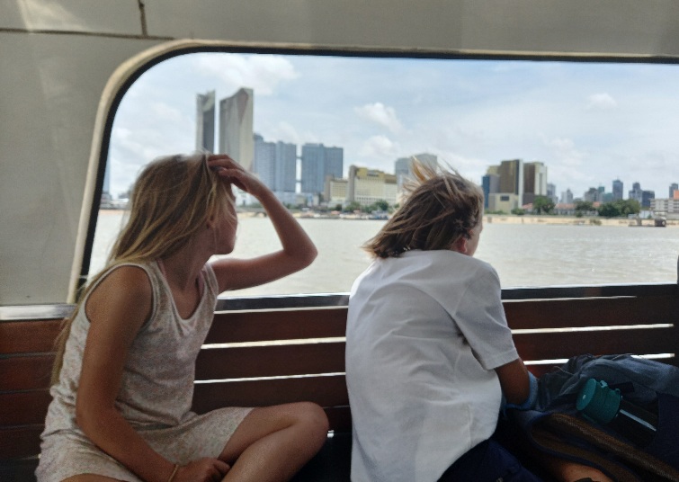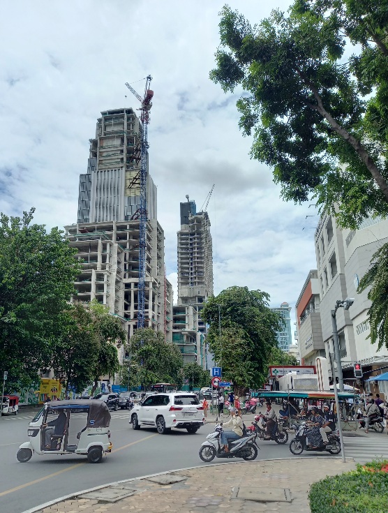 Bereits vom Wasser aus sahen wir die Skyline der Stadt. Viele Hochhäuser sind zu sehen und weitere sind in der Entstehung. Unser Fahrer, welcher uns von der Anlegestelle zum Hotel fuhr, hat uns freundlich und sehr nett bereits ein wenig zur Religion, den an der Strecke befindlichen Gebäuden erzählt, die wichtigsten Sehenswürdigkeiten und unter anderem dass es üblich wäre auf den Märkten zu handeln. Die Information ist uns nicht neu, dennoch hilfreich zu erfahren wo ca. der realistische Preis liegen könnte. Am frühen Mittwochnachmittag konnten wir unsere Zimmer beziehen und nach einem Regenschauer durften die Kids den Hotelpool ausgiebig testen. Das Interesse an der Stadt und der Wunsch nach Abendessen führten uns aus dem Hotel in die nähere Umgebung. Neben den neu entstehenden Hochhäusern, bemerkten wir auf dieser Erkundungstour mehrere Nobelkarossen (Bentley, AMG BMW, Mercedes etc.). Ich konnte dies für mich noch gar nicht recht zu sortieren, gerade weil/ obwohl ich noch kurz vorher gelesen habe, dass Kamboscha zu den ärmsten Ländern Asiens zählt -und auch zu den Ländern mit einem der höchsten Plätze auf dem Korruptionsindex. 24h später denke ich, dass die Stadt sich wohl sehr im Umbruch befindet und der reine Kapitalismus nur wenige Gewinner hervor bringt, selbst wenn der Lebensstandard für alle ansteigt.