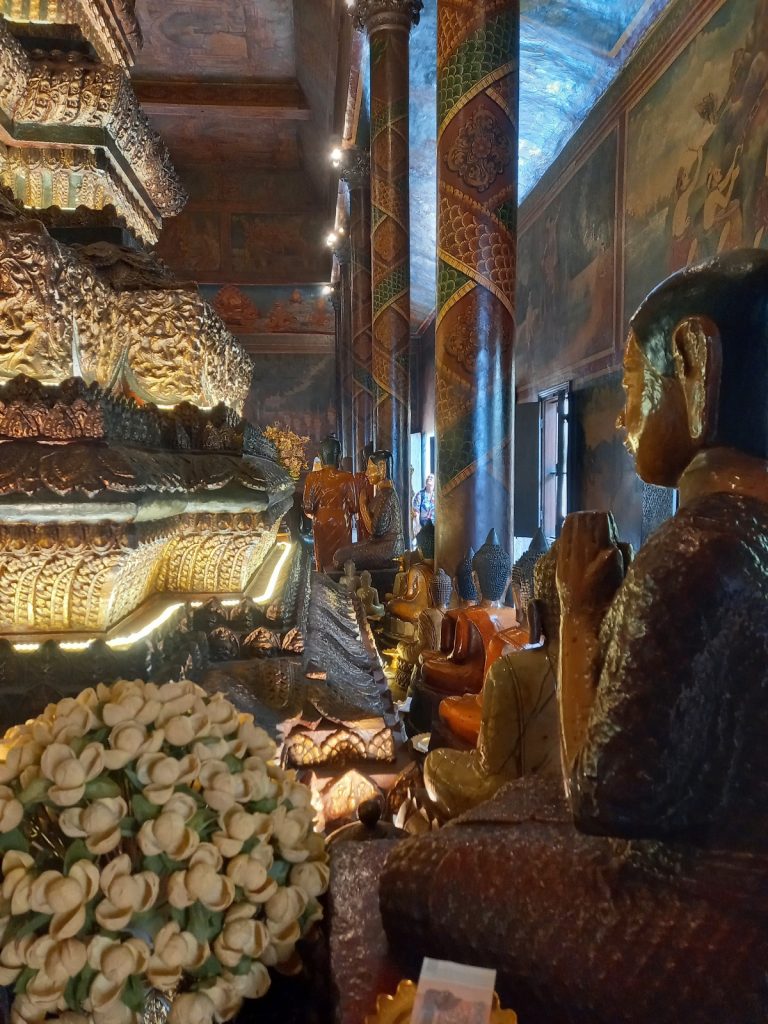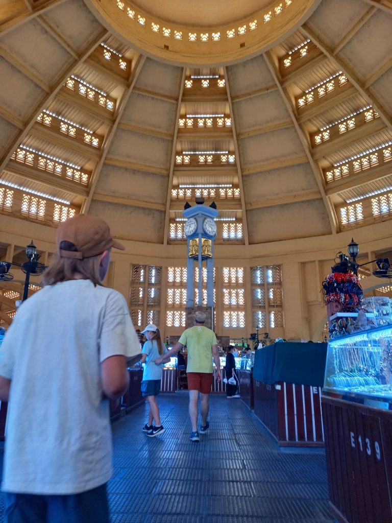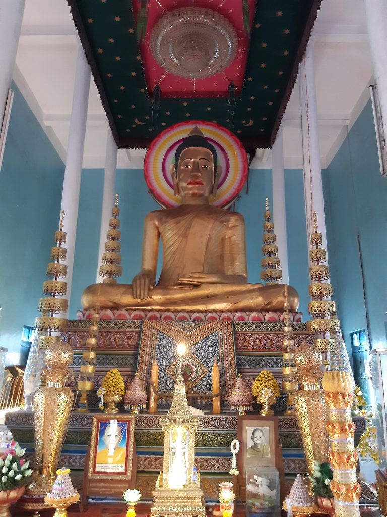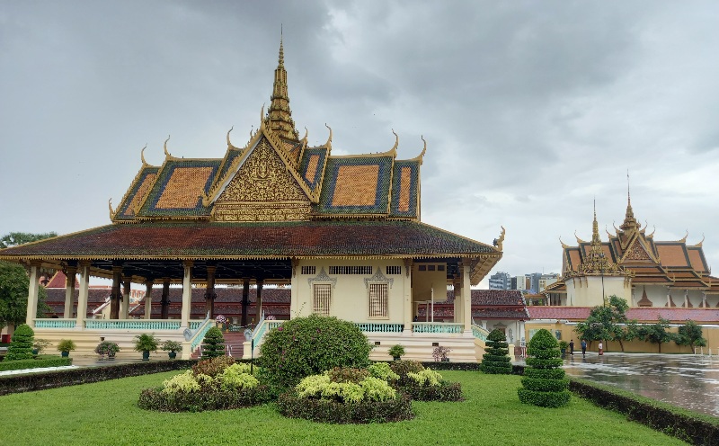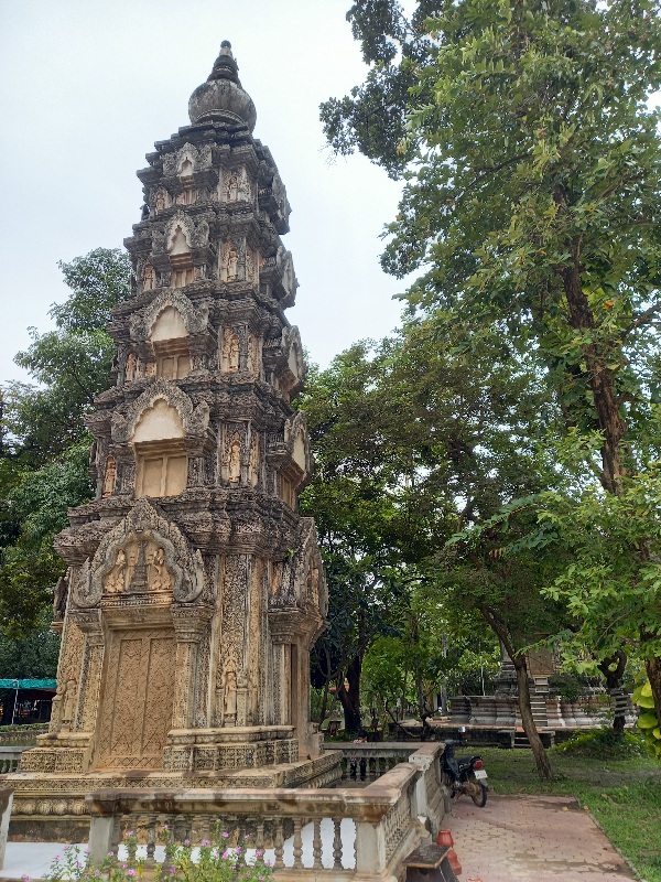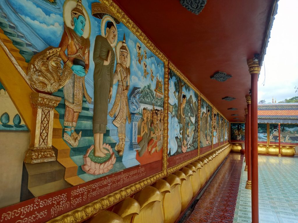 Bis zur Abfahrt stellte sich keine eindeutige Haltung zu der Stadt ein, vielleicht ist dies auch einfach der Umstellung von Vietnam auf Kambodscha geschuldet. Nichts desto trotz erkundeten wir am nächsten Tag die Stadt zu Fuß. Das ist echt schwer, da überall Tuk-Tuks auf einen warten und dich irgendwo hinfahren möchten. Trotz allem spazierten wir los, erstiegen den Pnom Wat (27m) und besichtigen den heiligen Tempel. Daneben schließt sich das French Quarter mit der Hauptpost an, wo wir uns treiben ließen. Die Kambodschaner sahen/sehen die Franzosen nicht als Kolonialherren, sondern eher als Beschützer da ohne sie vermutlich Kombadscha zwischen Thailand und Vietnam aufgeteilt worden wäre, berichtete uns ein Kambodschaner ein paar Tage später. Zum Abschluss und als Highlight des Tages sind wir noch in den Königspalast, in welchem u.a. der Thronsaal, die Silberpagode (ausländische Bezeichnung)/Emeraldpagode (inländische Bezeichnung) und das weiträumige Gelände besucht werden kann. In Kambodscha haben wir keine Reiseleitungen für die Ausflugsziele vorgebucht. Es gibt lizenzierte Reiseführer, welche vor Sehenswürdigkeiten auf Gäste warten. Unsere englischsprachige Guidin erklärte uns, dass wir Glück hätten da der König zu seinem jährlichen Check up in China ist und somit alle Gebäude bis auf das Privathaus besichtigt werden können. Durch die Führung durch die Palastanlage konnten wir viel über kambodschanischen Buddismus und Hinduismus lernen, die Khmer Architektur der Gebäude bestaunen sowie 1000 Buddhastatuen. Jede Familie, die es sich leisten kann, bringt dem König oder seiner Mutter eine Buddhastatur und diese wird dann in seinem Tempel ausgestellt. Da wir ja nur einen Kurzausflug😂 durch Phnom Penh geplant hatten konnten die Kids die wollten, dann gegen halb fünf oder etwas später in den Rooftop Pool.
