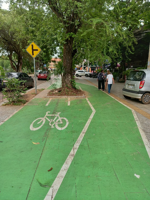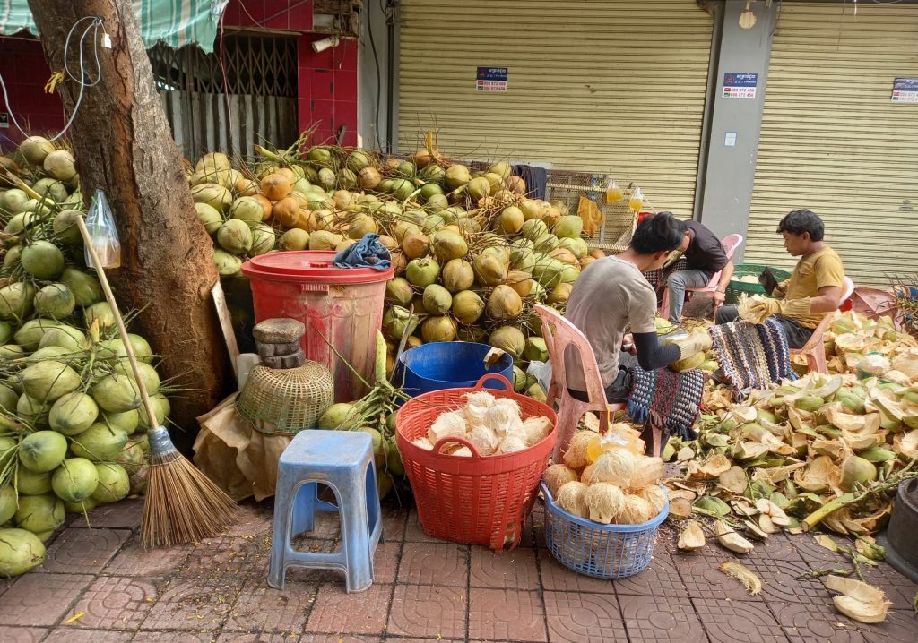 Samstag wollten wir ruhiger angehen lassen und nur die Stadt anschauen. Daraus wurde auch wieder ein Tagesausflug mit Start ca. 11 Uhr und Ankunft ca. 17 Uhr am Hotel. Wir haben zwei Tempel (Wat Damnak und Wat Preah Prom Rath) besichtigt und den alten Markt (Psar Chas) besucht. Auch hier sind wieder die enge Gänge voll mit allerlei Waren für die Touristen (wie Souvenirs, T-Shirts, Basketballcaps, Schuhe, Seiden-, Paschmina-, Kaschmirschals, Koffer,…) aber auch Einheimische (Fisch, Fleisch, Gemüse, Gewürz, Haushaltswaren aus Kunststoff oder Metall, Besen,…). Eine Pause zur Mittagszeit legten wir in einem Café ein, dessen Gewinn (teilweise?) der Mienenräumung mittels Minenräum-Ratten zu gute kommt. (Kambodscha zählt zu den am stärksten verminten Ländern der Welt. Die Massen an Minen stammen ab 1975 aus den Hinterlassenschaften des Regimes der Roten Khmer und des folgenden Bürgerkrieges.)
