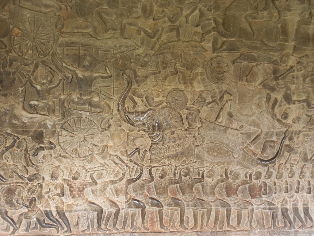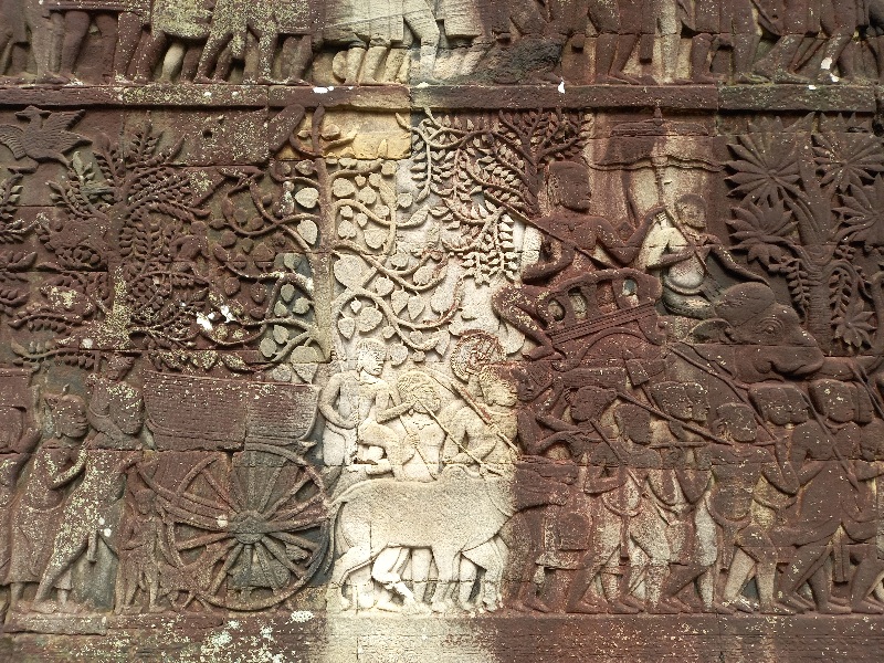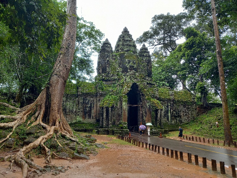 Den Vormittag verbrachten wir in Angkor Thom. König Jayavarman VII. besiegte ca. 1180 die Cham (heutige Thai), welche Jahre zuvor Angkor angriffen und festigte die Macht als Khmer König. Er ließ viele Tempel errichten und mit Angkor Thom eine neue uneinnehmbare Hauptstadt. Angkor Thom blieb für 250 Jahre die Hauptstadt des Khmer-Reiches.
