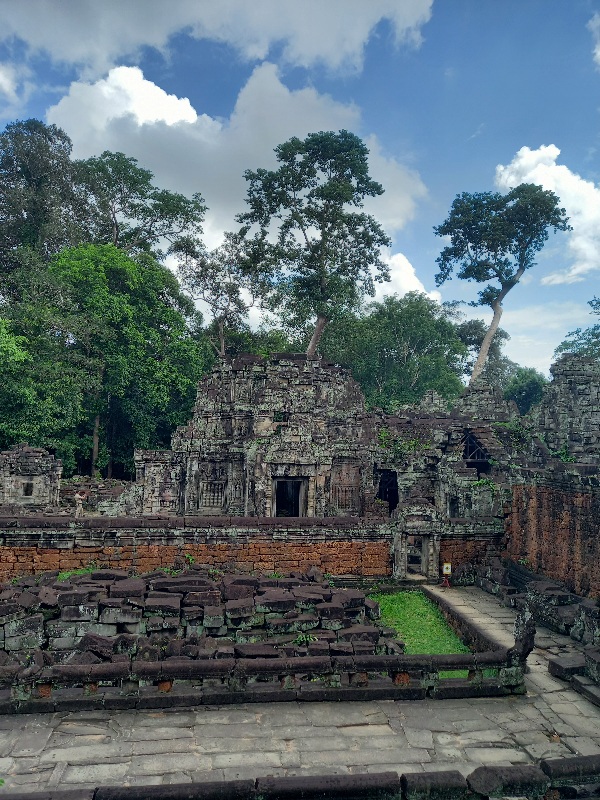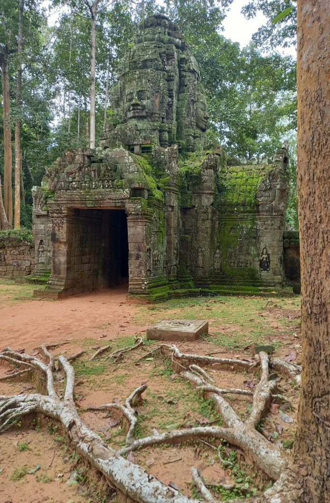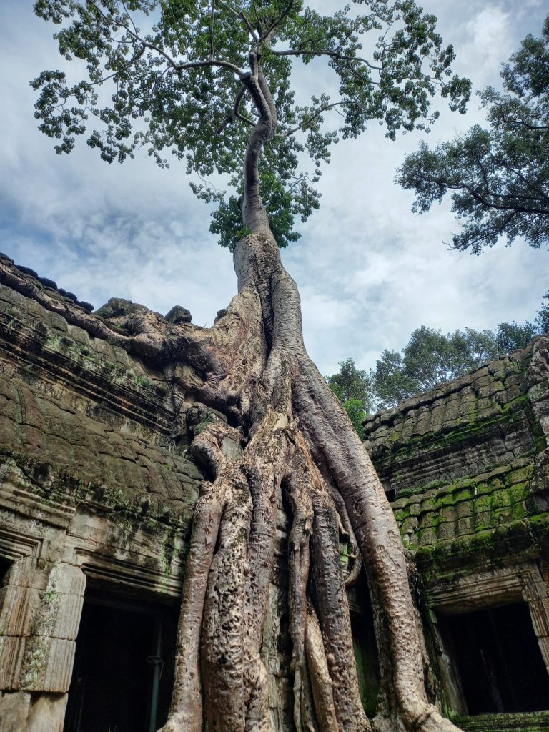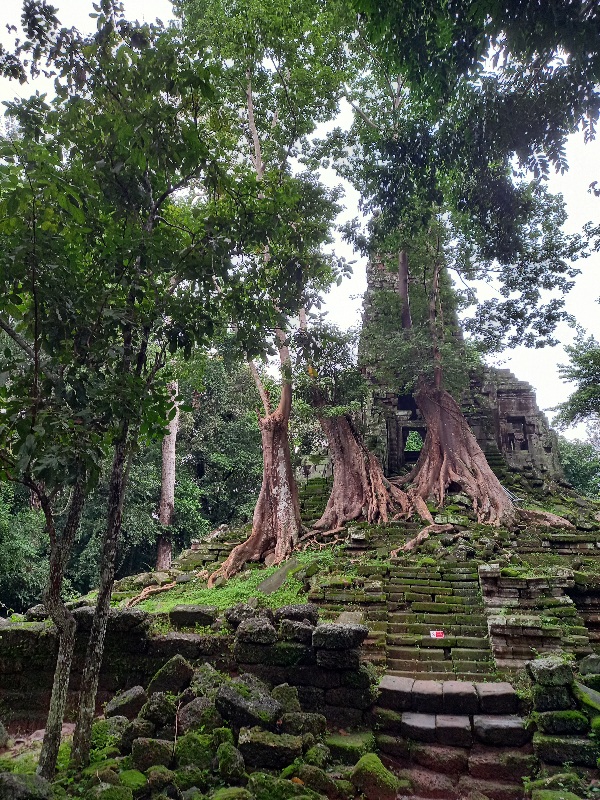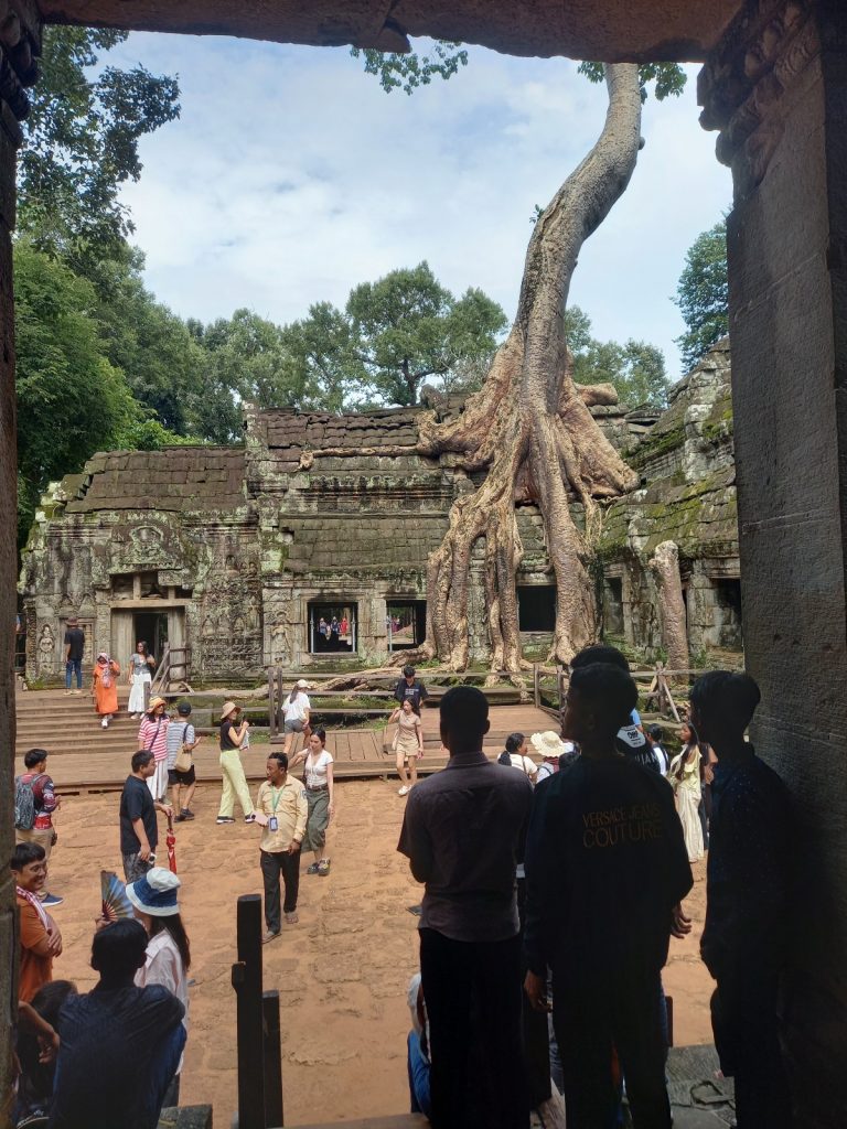 Nach dem Mittagessen besichtigten wir Ta Prohm. Dies ist ebenfalls eine buddhistische Tempelanlage von Jayavarman VII. 1,7 km östlich der Stadtmauer von Angkor Thom. Diese ist fast noch im gleichen Zustand, wie sie die französischen Forschungsreisende im 19. Jahrhundert vorfanden.