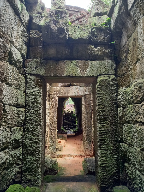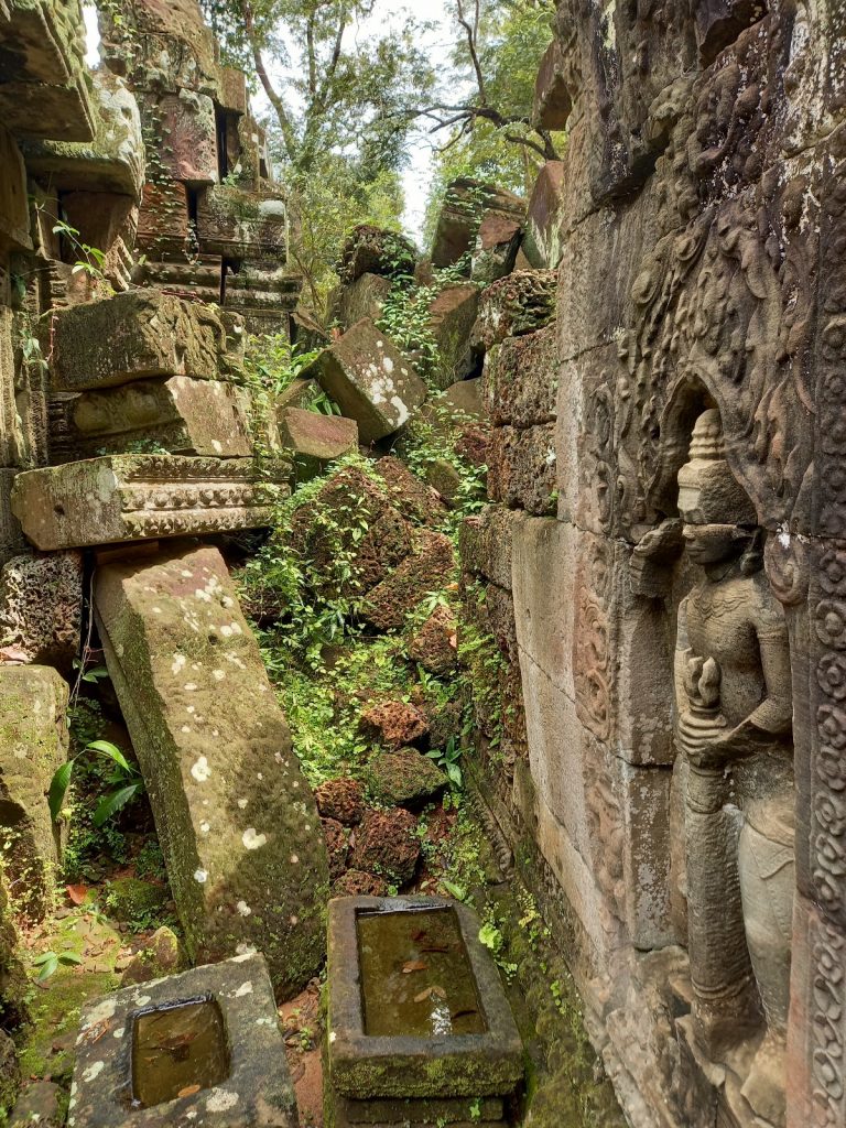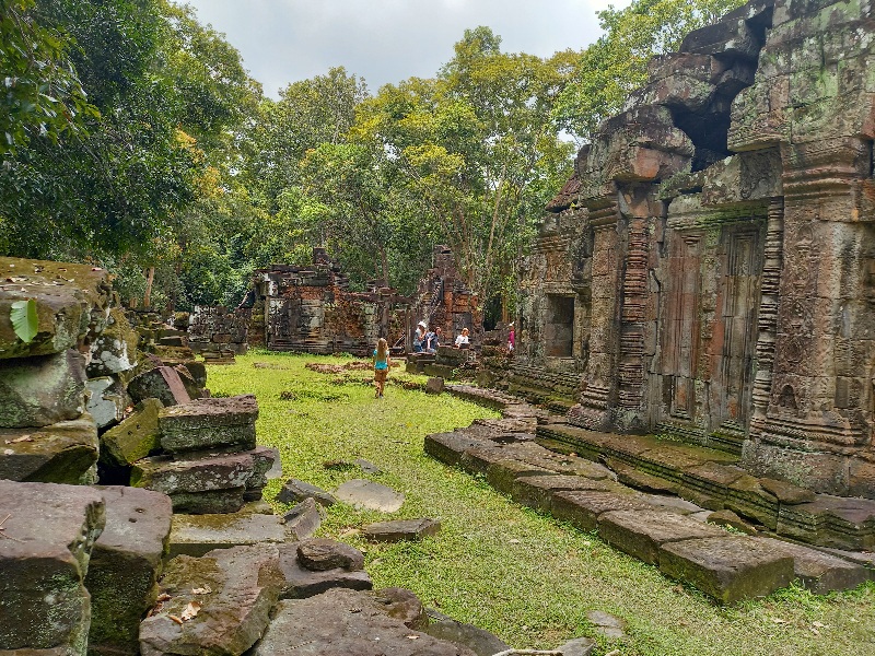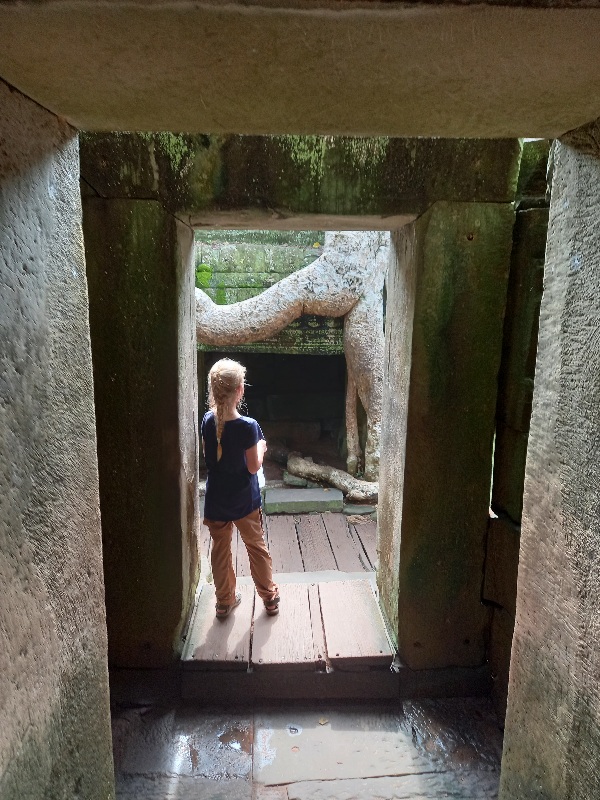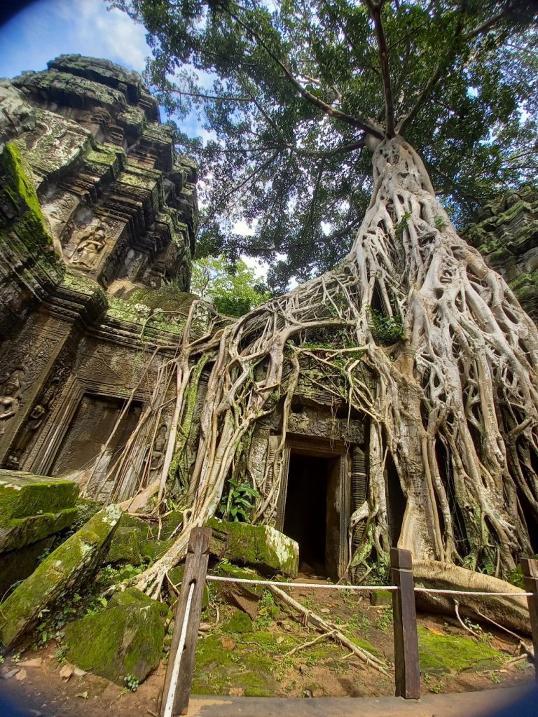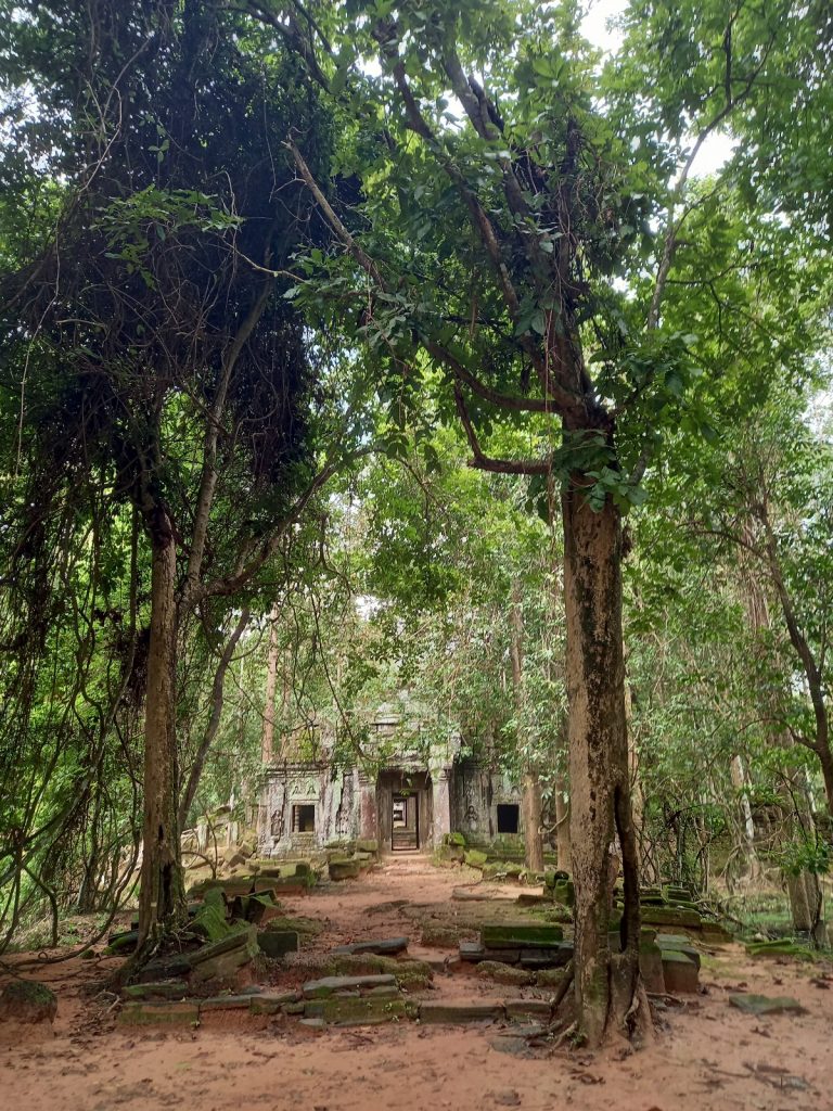 Nach dem Mittagessen besichtigten wir Ta Prohm. Dies ist ebenfalls eine buddhistische Tempelanlage von Jayavarman VII. 1,7 km östlich der Stadtmauer von Angkor Thom. Diese ist fast noch im gleichen Zustand, wie sie die französischen Forschungsreisende im 19. Jahrhundert vorfanden.