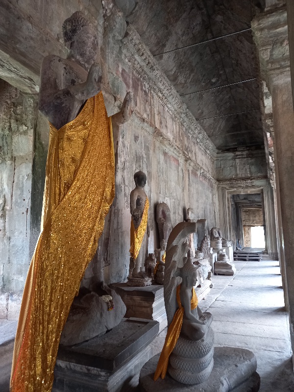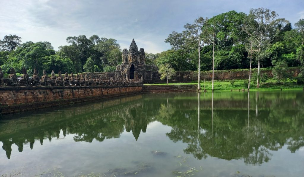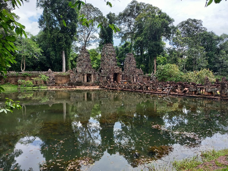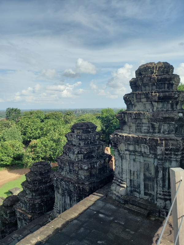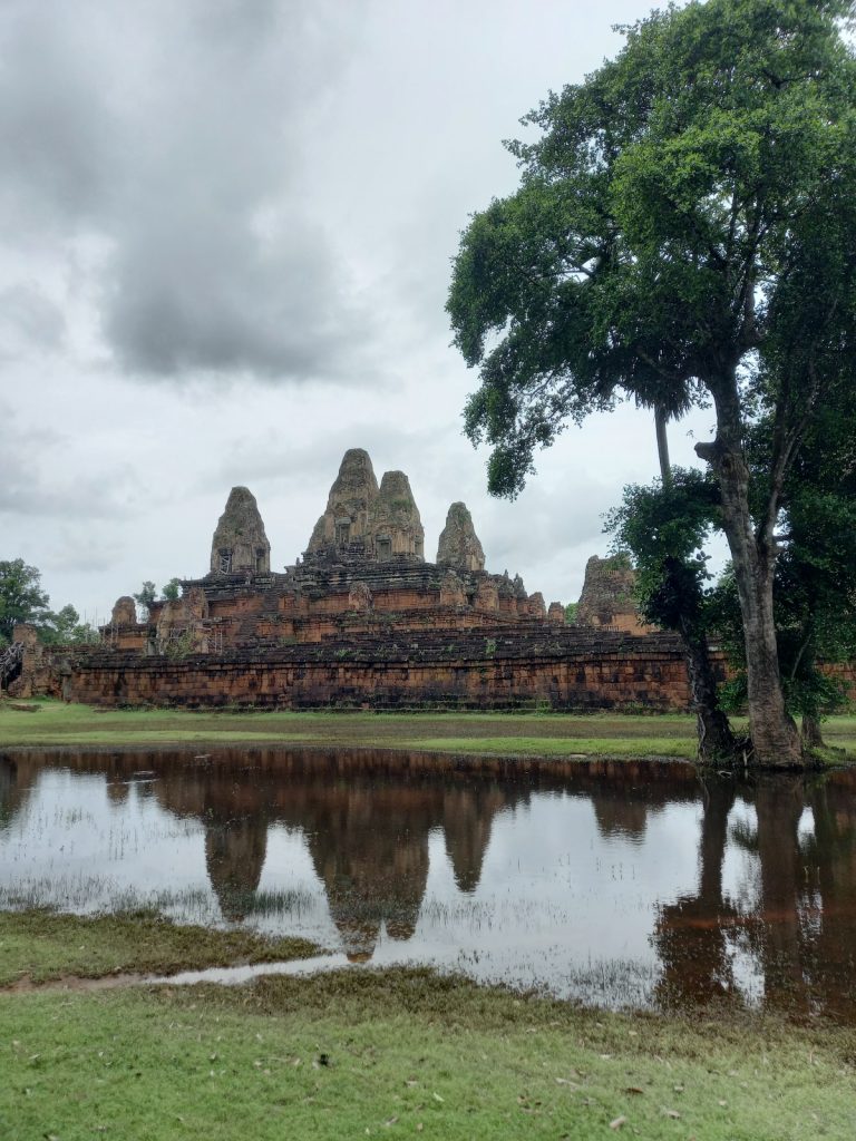 Ein kurzer Ausflug in die Geschichte und die Tempelanlagen von Angkor: In den Jahren von 802 – 1432 Das Angkor Gebiet umfasst Tempel, Residenzen und religiöse Stätten aus dem 9. bis 15. Jahrhundert. Wichtige Tempel wie Angkor Wat, Bayon, Ta Prohm und Banteay Srei zeigen fortschrittliche Architektur und religiöse Vielfalt. Könige wie Jayavarman II., Suryavarman II und Jayavarman VII prägten das Reich mit Monumentalbauten, Wasserwegen und Infrastruktur. Zwischen dem 12. und 15. Jahrhundert erlebte es eine Blütezeit, gefolgt von Verfall durch politische Instabilität und Umweltfaktoren. Erhalten sind heute fast nur die Tempelanlagen. Gebäude für Menschen wurden aus Holz errichtet, für Götter aus Stein.